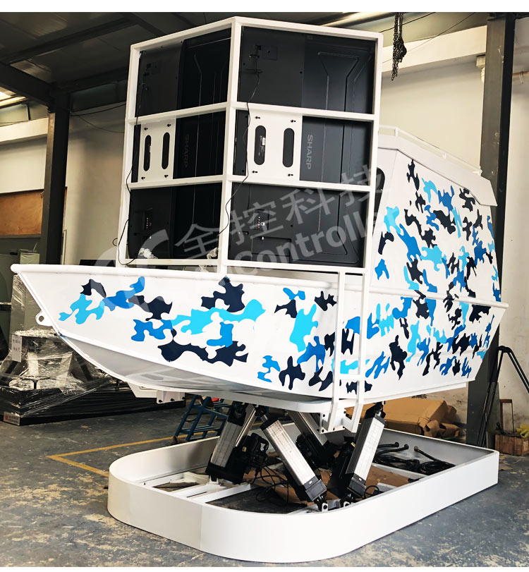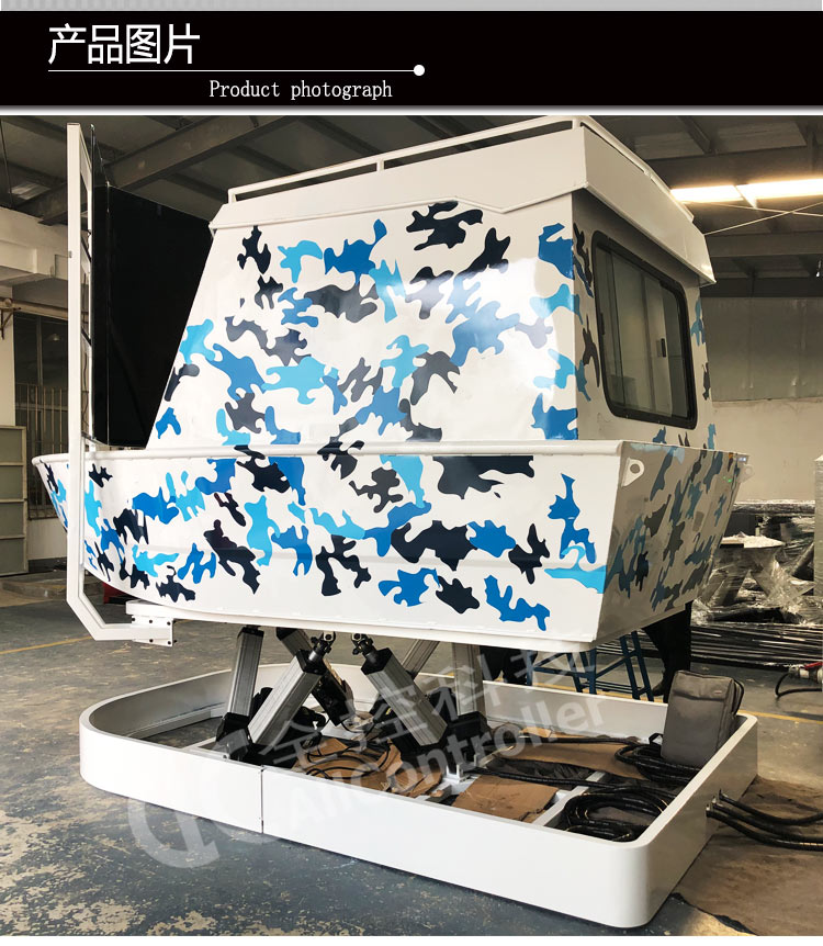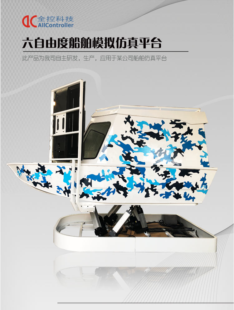 南京全控經過多年模擬器及六自由度平臺技術的基礎上進行改進,并取得重大突破,多項技術處于國際領先位置。設備采用最新的六自由度結構,無機械死角,俯仰角范圍,滾轉角范圍,通過專業計算機對飛行數據的快速處理和計算,運動座艙可以實時反映輪船的姿態變化。新升級六軸伺服控制系統,動作運行速度快而且柔和更加適合游藝產品應用、大大降低用戶維護和安裝成本,采用計算機自動控制為核心的控制系統,較以前的運動開關系統有了很大的改善,使整機功能更加完善,操作界面更加簡單明了;采用標準的接口和電纜,使現場安裝和調試更加簡單。