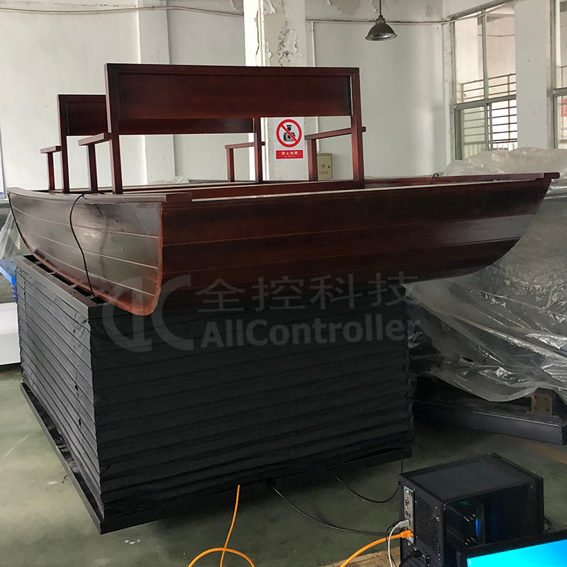 該六自由度平臺專門用來科普館VR模擬科普船,體驗大宋的海運繁榮的盛世。體驗者坐在船舶模擬器上,通過佩戴VR眼鏡觀看大宋海運的繁盛,船舶隨著波浪顛簸,平臺本身也會隨之運動,有如親身泛舟在大宋港口中,體驗前年前的盛世。