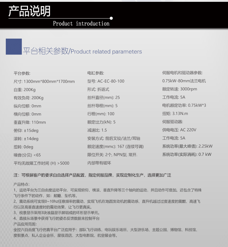 關(guān)鍵詞: 三自由度電動(dòng)仿真平臺(tái) 飛行模擬駕駛體驗(yàn)平臺(tái)