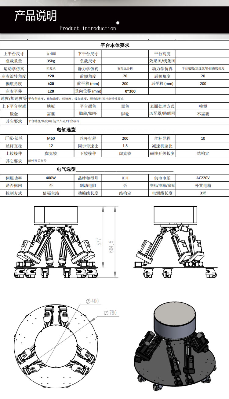 七自由度傾斜搖擺試驗臺,用于實驗室環境的汽車、船舶、飛機等駕駛設備半實物仿真以及特種設備的測試、傾斜搖擺實驗、任務訓練、訓練評估、事件重現等。
