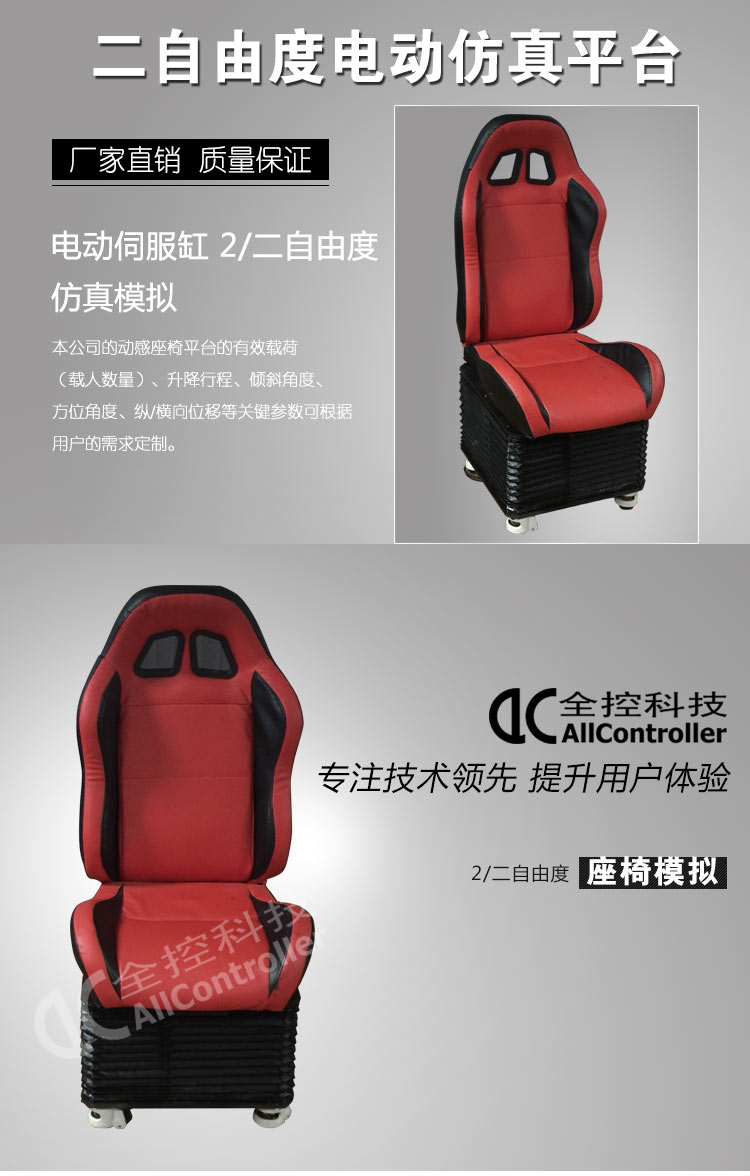 動感體驗平臺是由電動缸,上下平臺框架以及控制系統,風琴罩等組成,產品均為公司自主研發生產,性價比更高,穩定性更強。