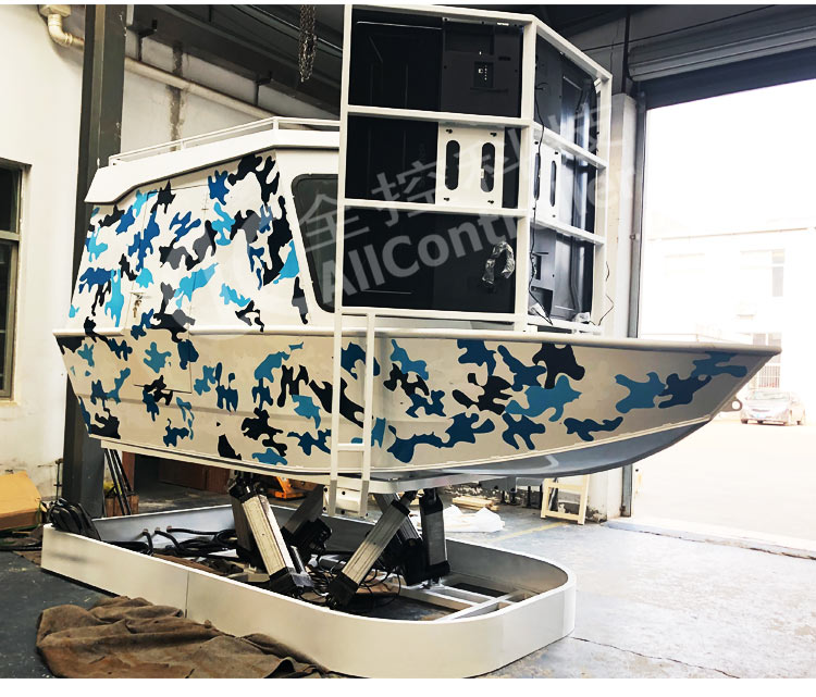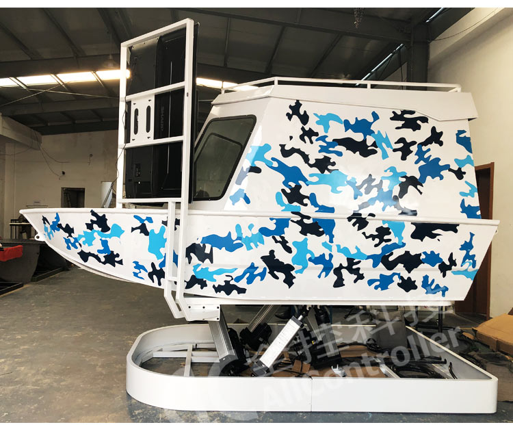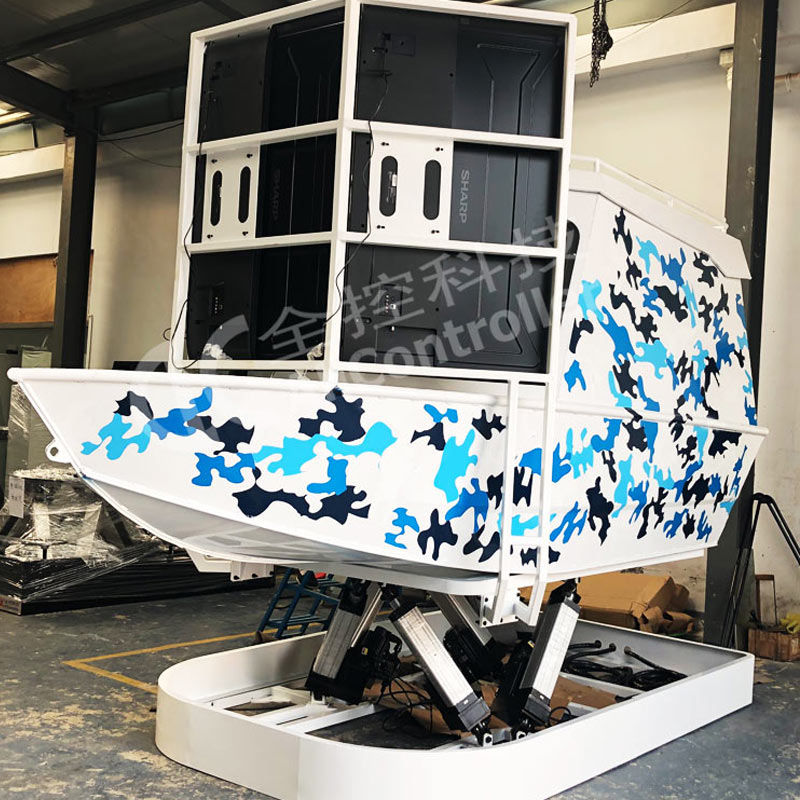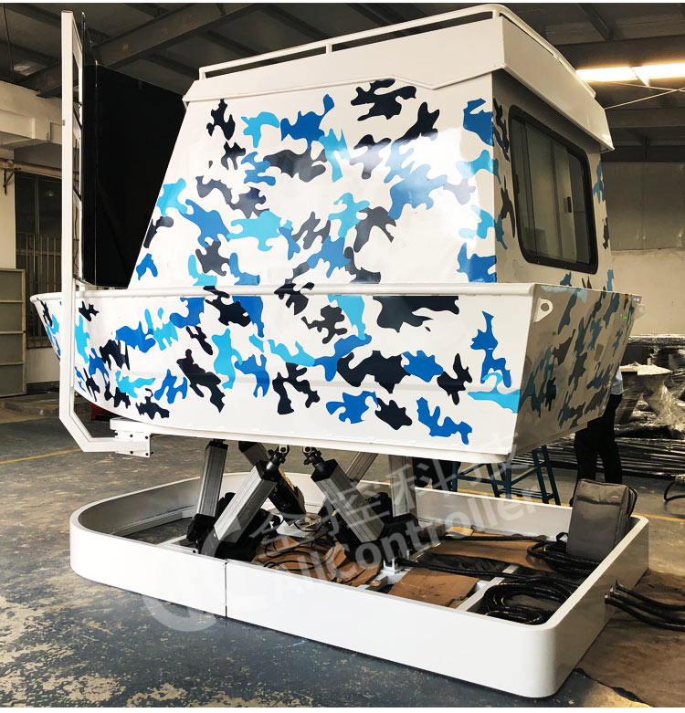 該六自由度船舶訓練模擬平臺及其控制系統由南京全控科技自主研發,可實現船舶訓練,江河湖泊操作駕駛等模擬真實體驗。該平臺專為某武警支隊訓練研發,滿足日常訓練和操作。同時該類平臺適用于在展館、游戲娛樂、特種操作培訓、環境模擬訓練等不同場合。