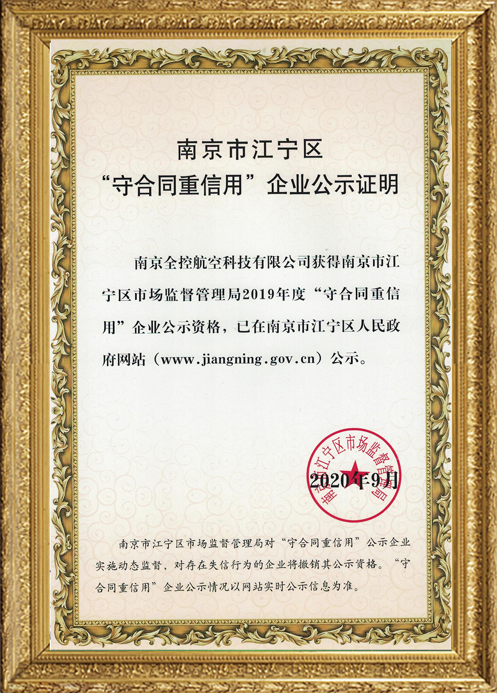 “守合同重信用”企業公示證明