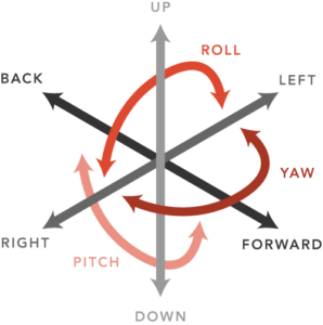 首先,您應(yīng)該知道物體可以在三維空間中移動(dòng)的六個(gè)自由度(DOF)。六個(gè)角度是(1)向前/向后,(2)向上/向下,(3)左/右,(4)偏航,(5)俯仰和(6)滾動(dòng)。它們聽起來都相同或相似,不是嗎?