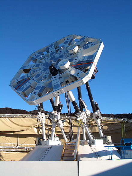 Stewart平臺(tái)的主要應(yīng)用之一是目標(biāo)跟蹤。在此應(yīng)用中,目標(biāo)可能是平臺(tái)移動(dòng)時(shí)的靜止位置(例如對(duì)地靜止衛(wèi)星或雷達(dá)/搜索地面目標(biāo)),或者目標(biāo)可能是平臺(tái)靜止時(shí)移動(dòng)的目標(biāo)(例如太陽能/星體跟蹤器應(yīng)用)。射電望遠(yuǎn)鏡實(shí)驗(yàn)是后一種情況的一個(gè)很好的例子,在這種情況下,借助Steward平臺(tái)將望遠(yuǎn)鏡的天線對(duì)準(zhǔn)目標(biāo)星系/星體。