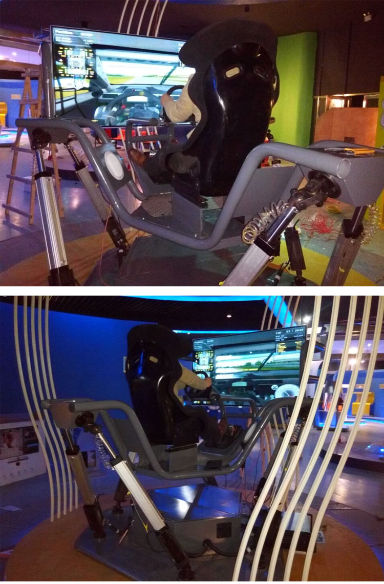 其中用到了三維圖像即時(shí)生成技術(shù)、汽車動(dòng)力學(xué)仿真物理系統(tǒng)、大視場(chǎng)顯示技術(shù)(如多通道立體投影系統(tǒng))、六自由度運(yùn)動(dòng)平臺(tái)(或三自由度運(yùn)動(dòng)平臺(tái))、用戶輸入硬件系統(tǒng)、立體聲音響、中控系統(tǒng)等。