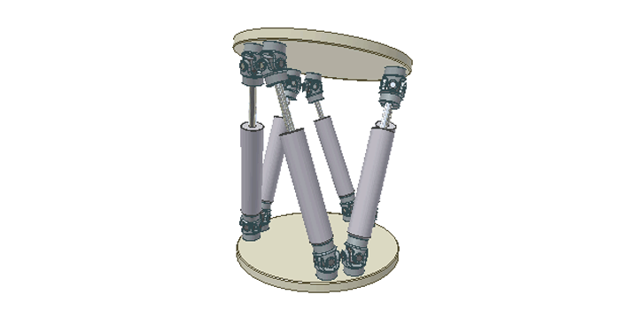 Stewart機器人擁有六自由度,有六條支鏈,每條支鏈的兩端為球副,中間由一移動副聯接兩桿。