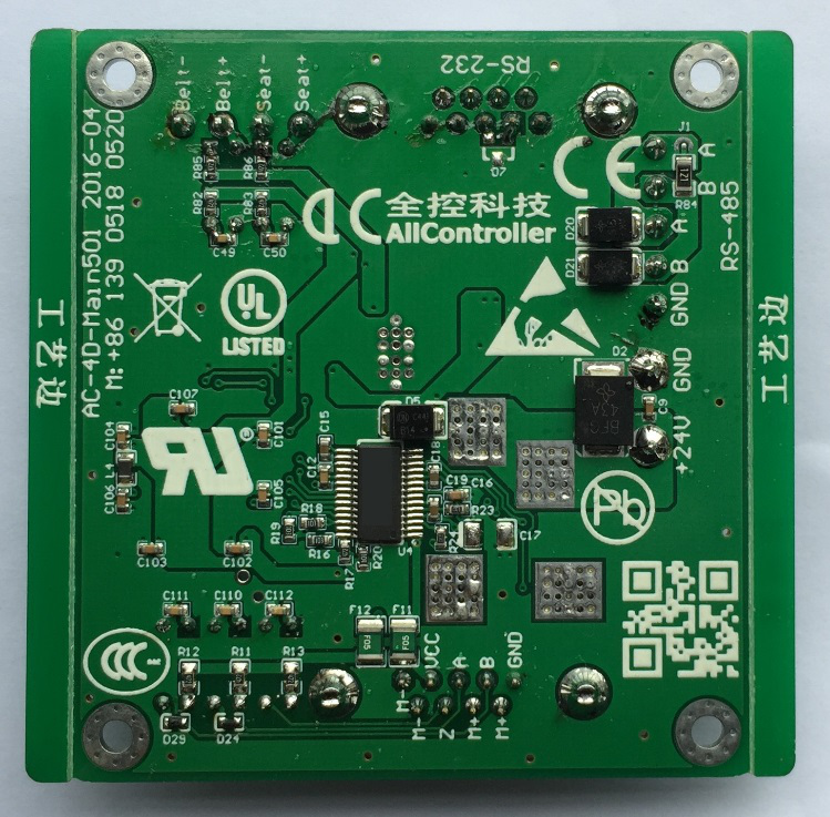 我公司在2016年4月正式推出了ACB501型單通道大功率有刷電機型平臺運動控制卡,它僅為1自由度電動平臺控制器,板子尺寸只有70*70mm,約為成年人的半個手掌大小。它主要用作在小型四軸/七軸旋轉平臺的旋轉軸上使用,也可用在駕駛模擬器上的方向盤/搖桿的力反饋控制。其最大的輸出電流可達20A,當用于36V的電機控制時,最大輸出功率720W。另外在控制的方式選擇上也相當靈活,可以選用高速下橋MOSET續流、高速下橋Diode續流、低速下橋續流和四象限控制等方式。使得電機處于顫振模式,減小了電機的起動時間,進而提高了被控對象的反應速度。