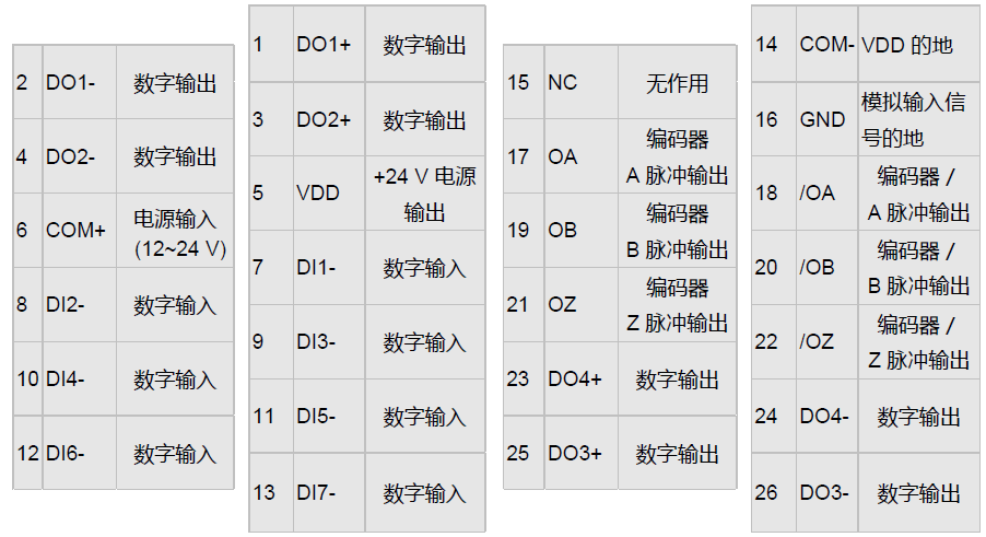 2. 關于負極回路部分:14腳(COM-)和16腳(GND)需要短接起來。如果使用抱閘時,應將2腳(DO1-)也一同短接起來。