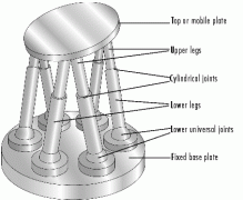 六自由度運動平臺是由六支電動缸,上、下各六只萬向鉸鏈和上、下兩個平臺組成,下平臺固定在基礎上,借助六只電動缸的伸縮運動,...